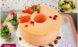 This black forest cake is made of chocolate chiffon layers together with fresh and canned cherries. The cake is also dressed with chocolate bark, light whipped cream and garnished with finely chopped chocolate to give it its signature look. Made suitable for local taste, across cultures and age groups, this…